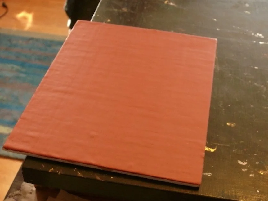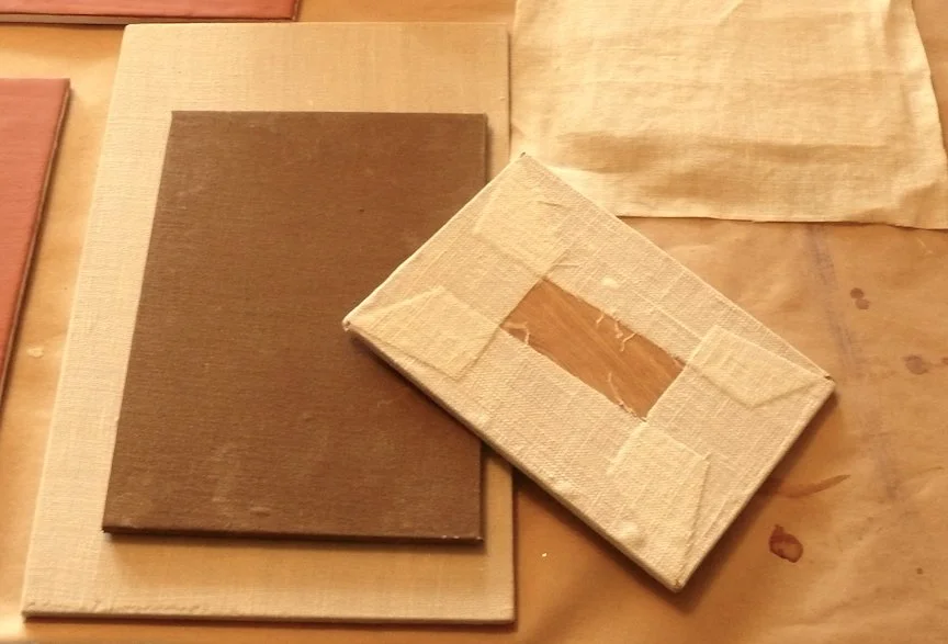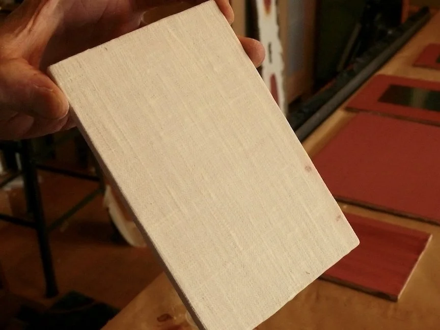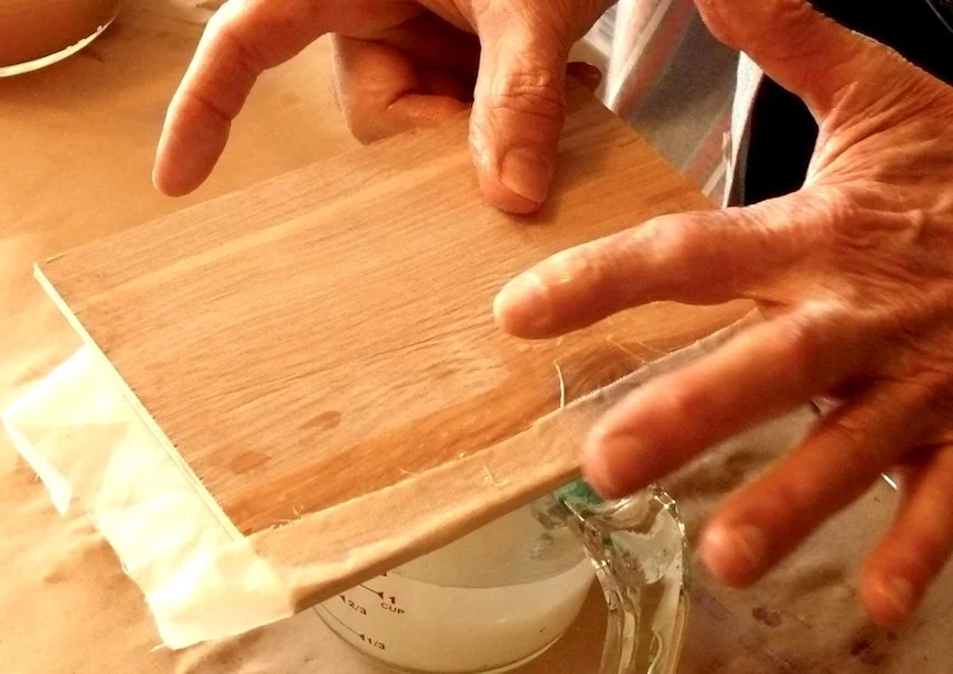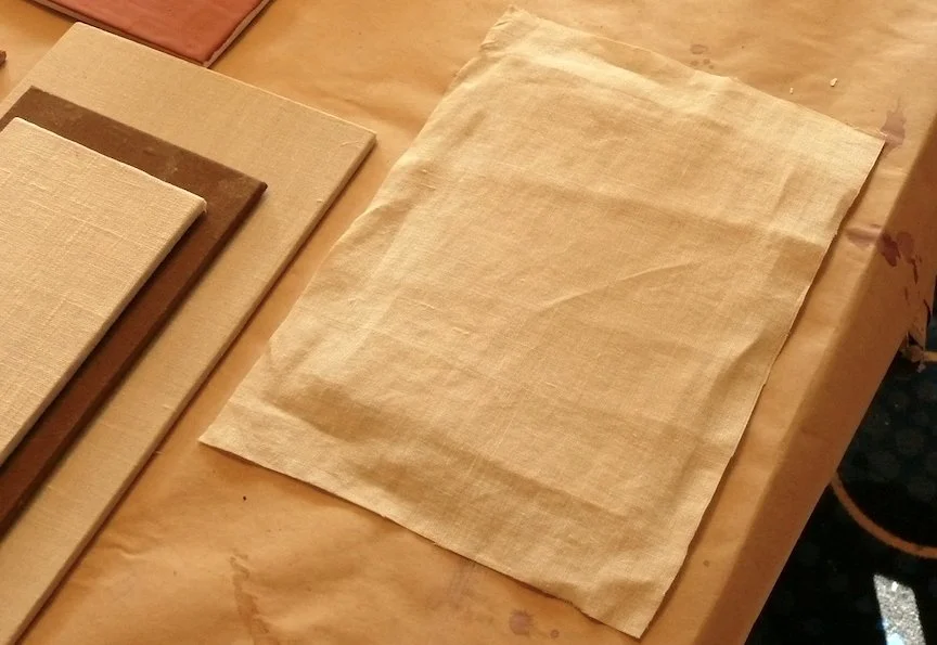 Den Stoff umfalten und der Rückseite befestigen. Danach den Hasenleim über Nacht trocknen lassen.