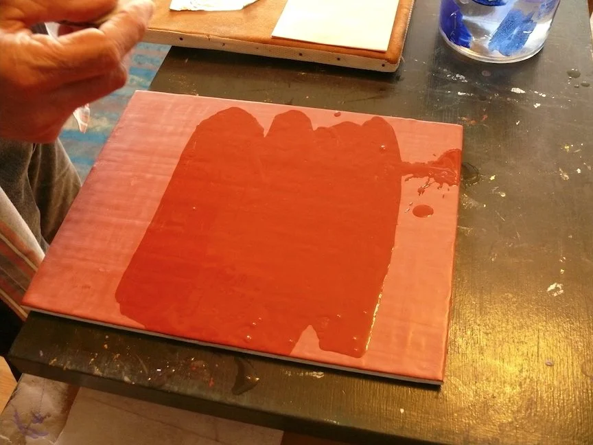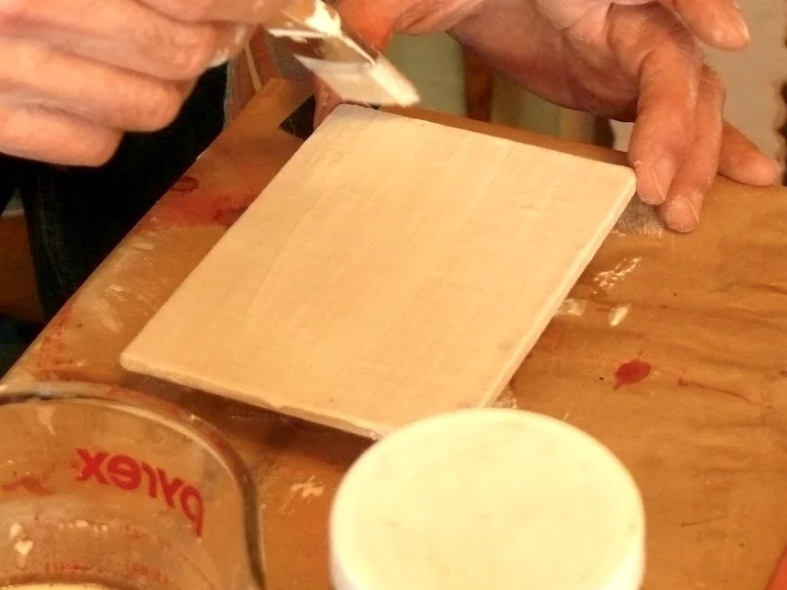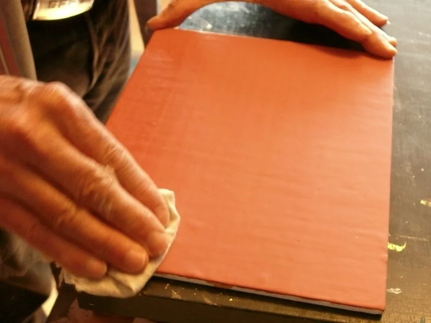 Den Kreidegrund warm in einer Richtung auftragen. Die erste Schicht wird hauptsächlich von dem Stoff aufgesaugt.