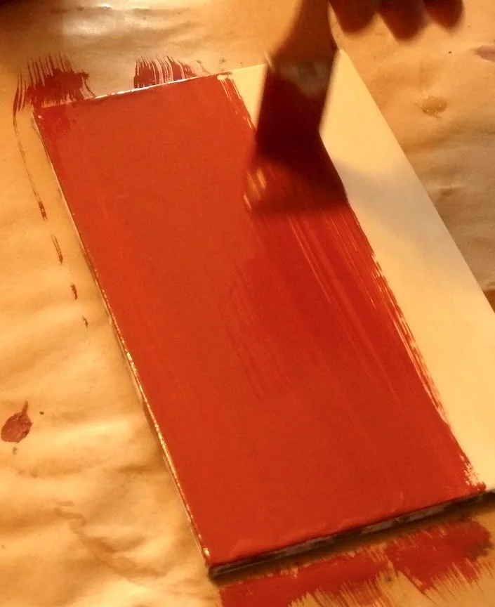 Sobald die erste Schicht getrocknet ist, kann die zweite Schicht aufgetragen werden. Pinselstriche im rechten Winkel der Streichrichtung der ersten Schicht auftragen.