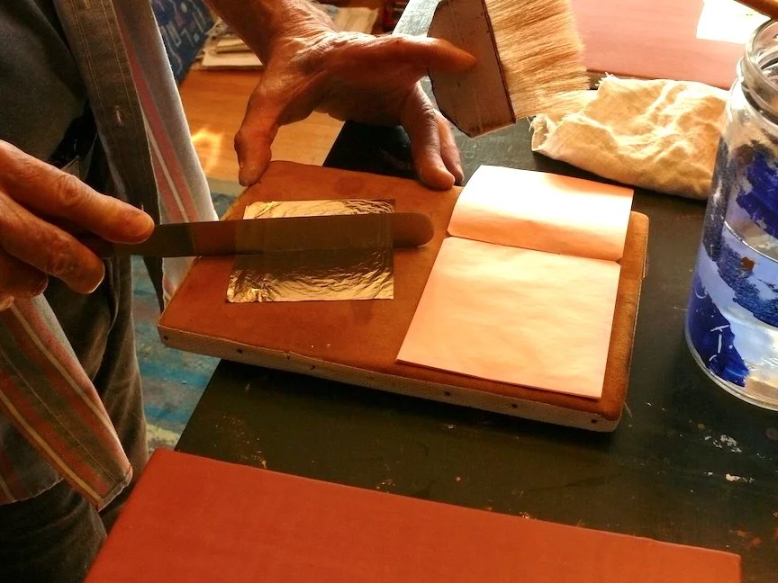 Während das Wasser aus dem Poliment verdunsted, den Moment abwarten, wenn das Poliment sich hohl unter dem Achatstein anfühlt. Dann kann das Gold poliert werden.